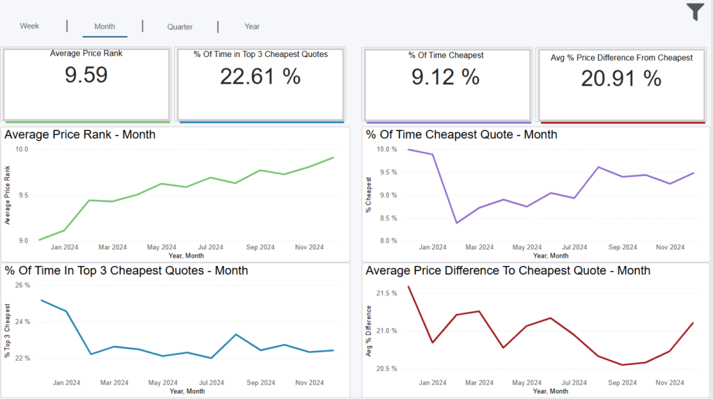 % Of Time in Top 3 Cheapest Quotes = # of quotes in top 3 cheapest/# of quotes